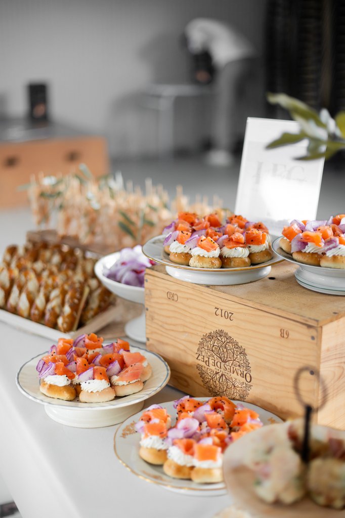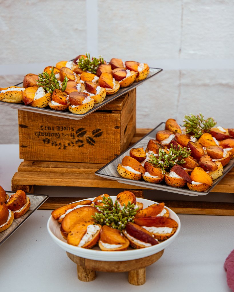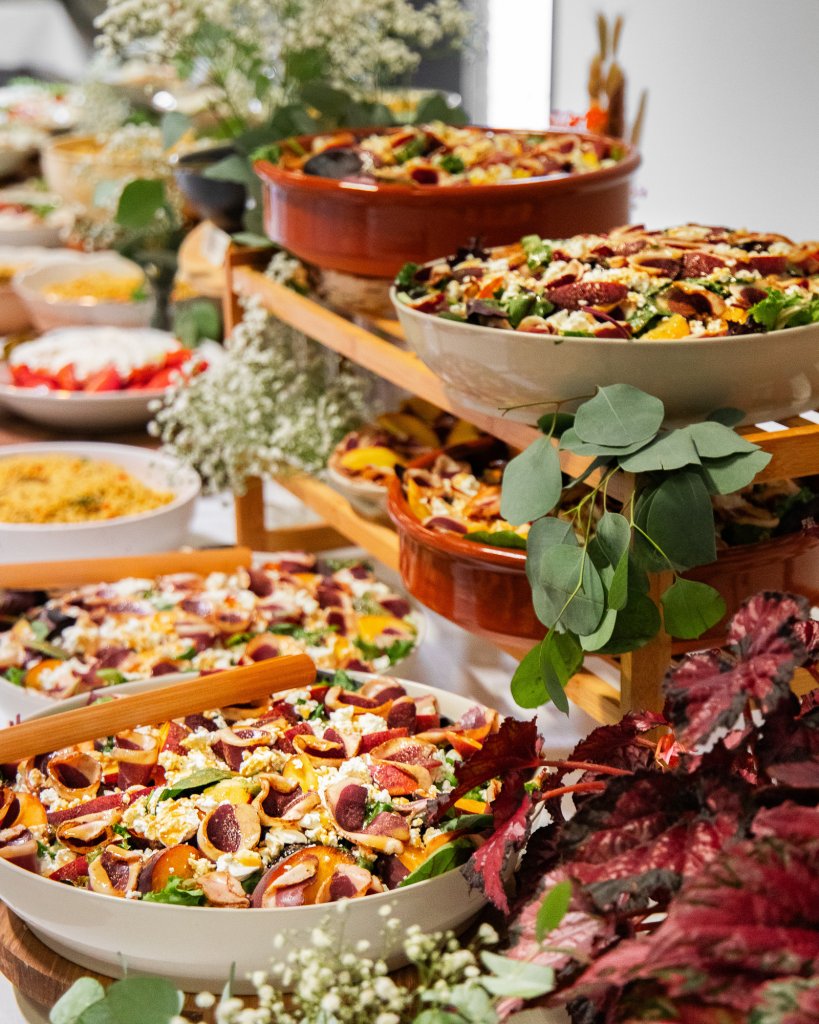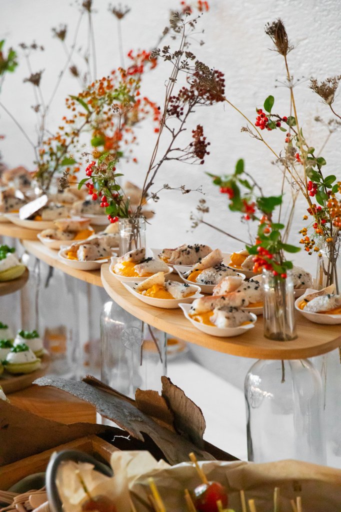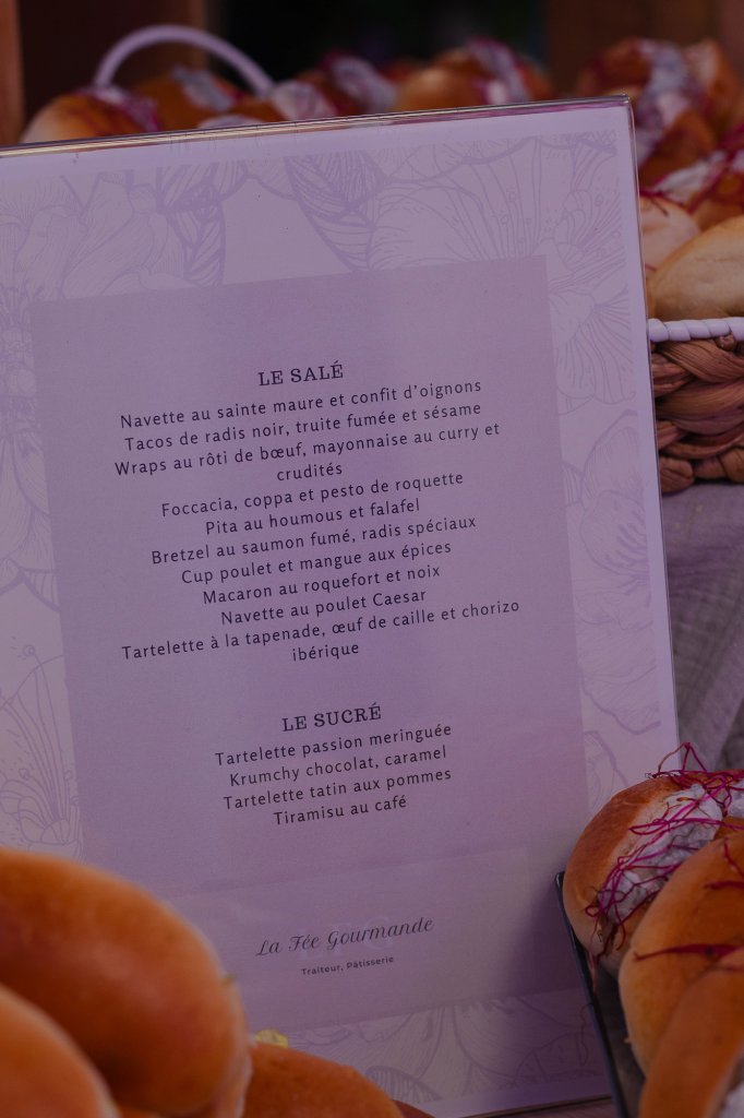 Les buffets salés, pièces sucrées et desserts personnalisés sont pensés pour s’harmoniser avec l’esthétique générale de la fête et mettre en valeur les moments forts.