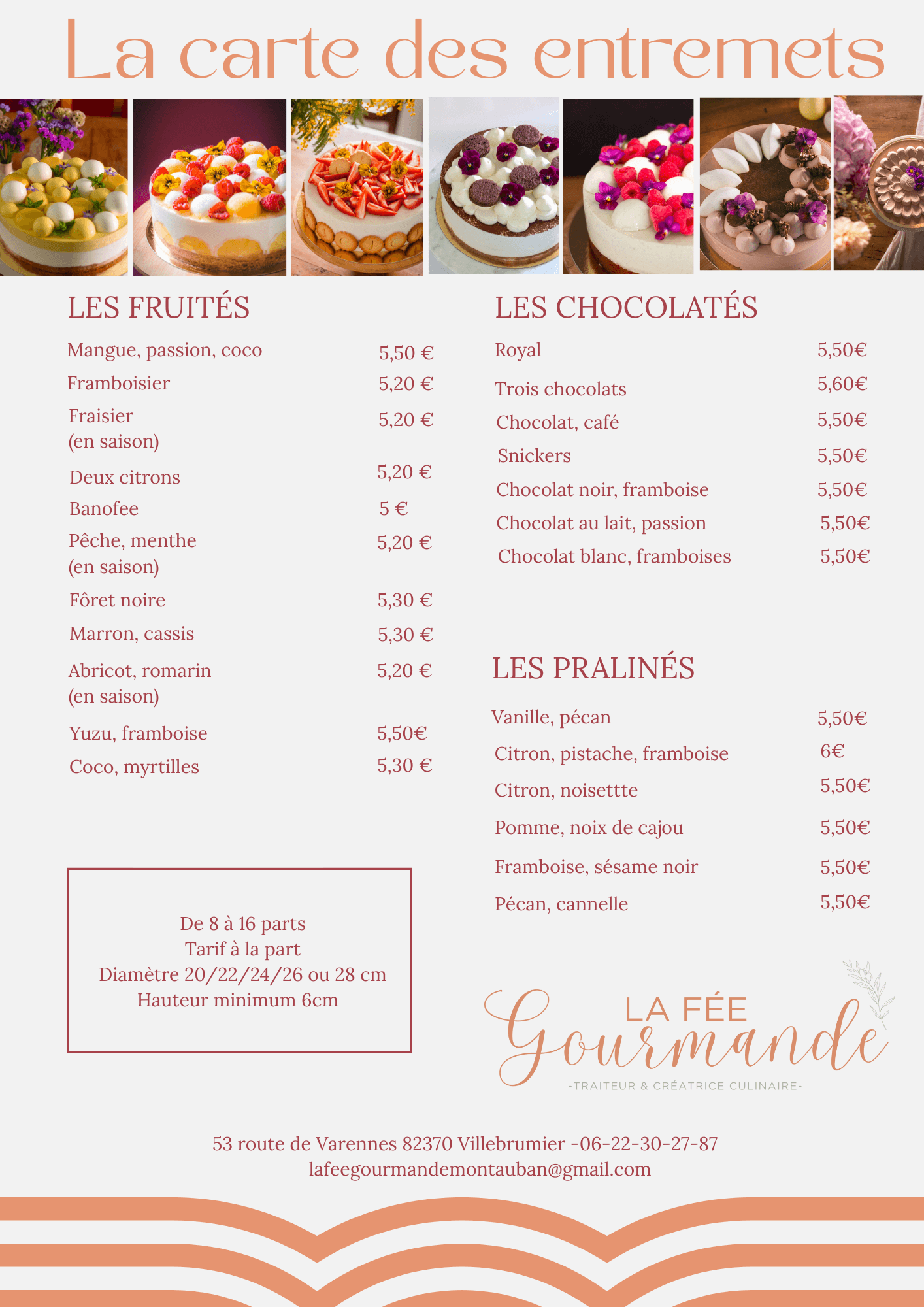 Les entremets de La Fée Gourmande sont pensés pour accompagner vos moments importants, du repas de fête à l’événement familial.