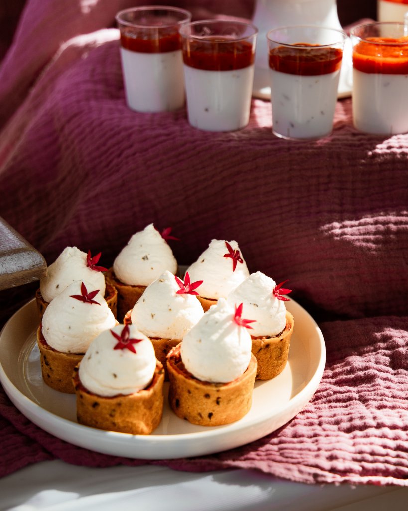 - Desserts individuels tels que tartelettes, verrines ou mini-entremets,